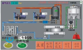 采用的是西门子PLC 控制器;人机界面:配置液晶触摸屏,实现智能人机对话,能显示机组运行状态,通过控制器实现对所有制冷设备的开停和能量调节,无须人工操作。