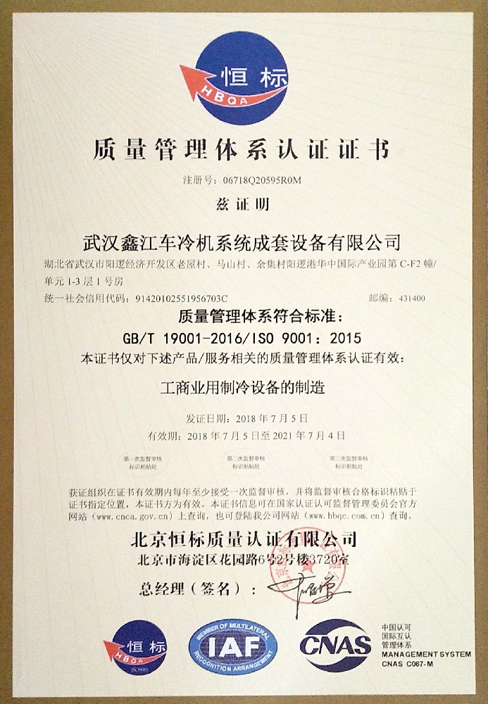 质量管理体系认证证书(中文版)
