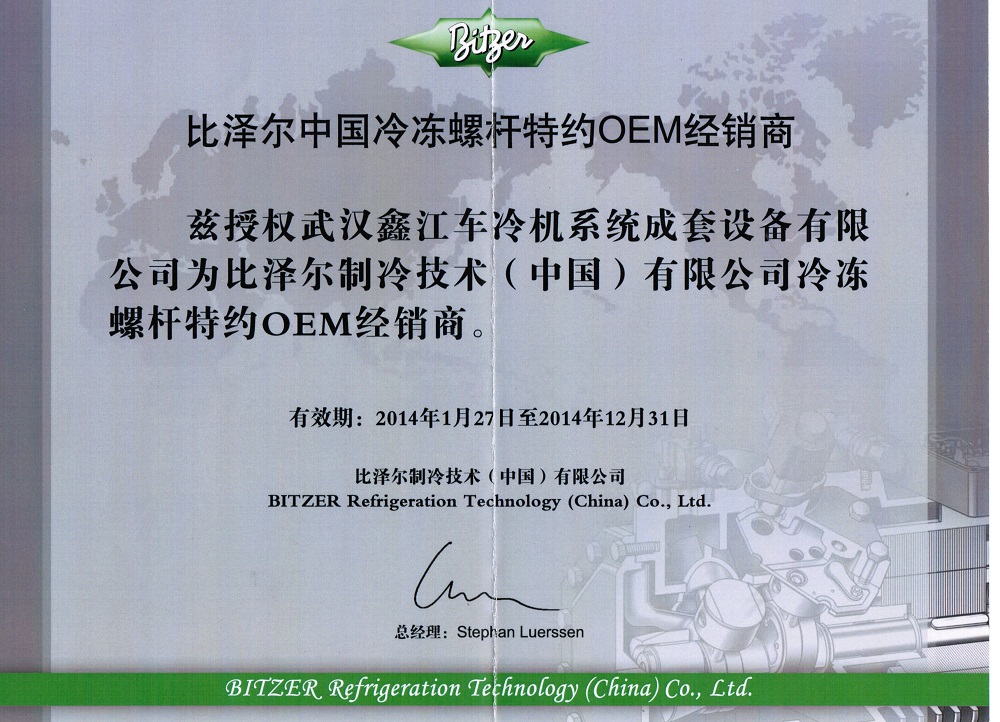 汉钟OEM授权证书